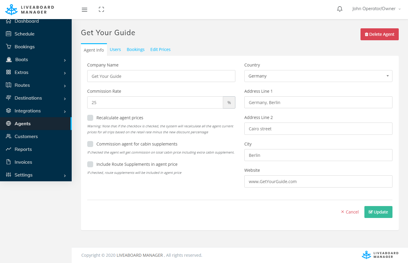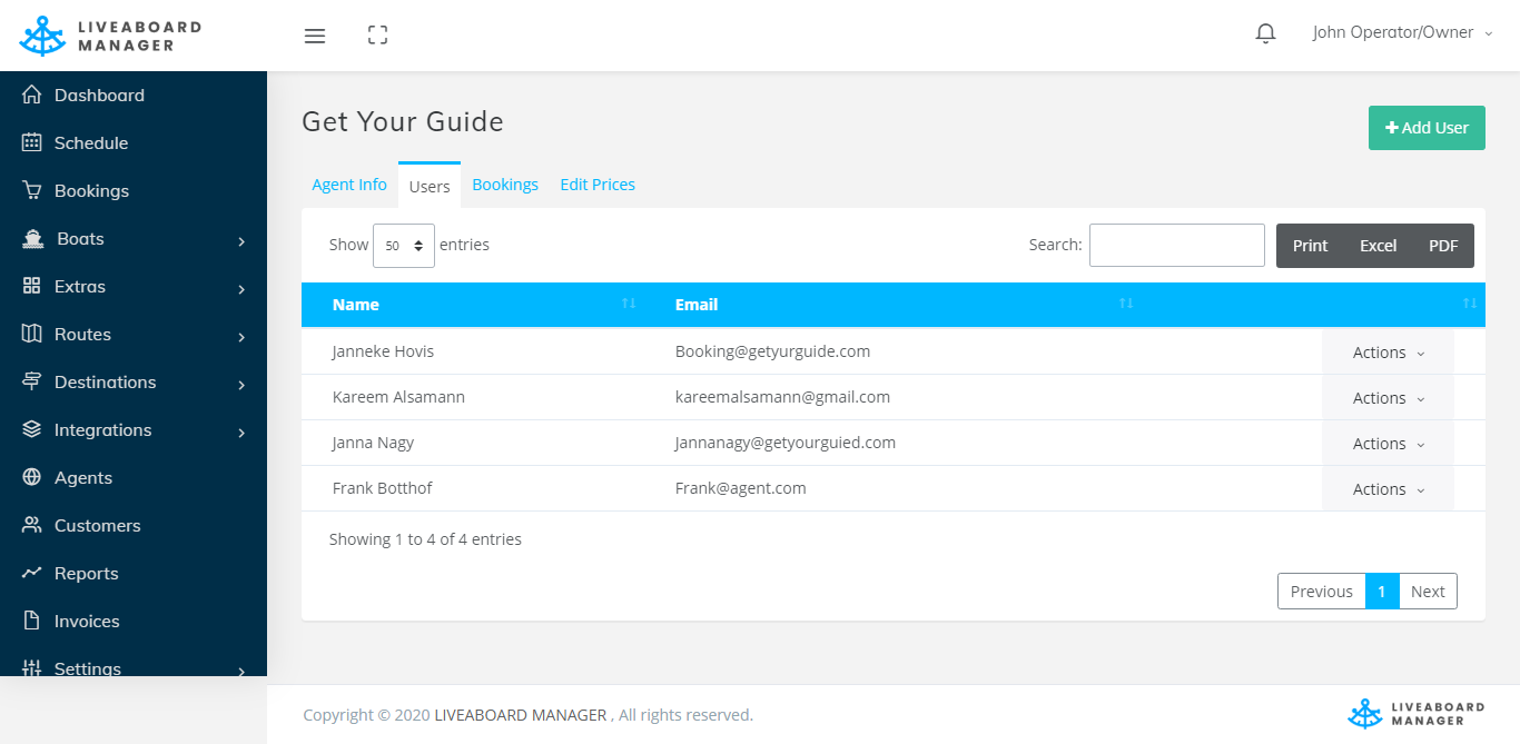 Besides your own users, each of your agents can also manage a number of users that can request bookings. You can set different prices for each agent and control everything from one place.